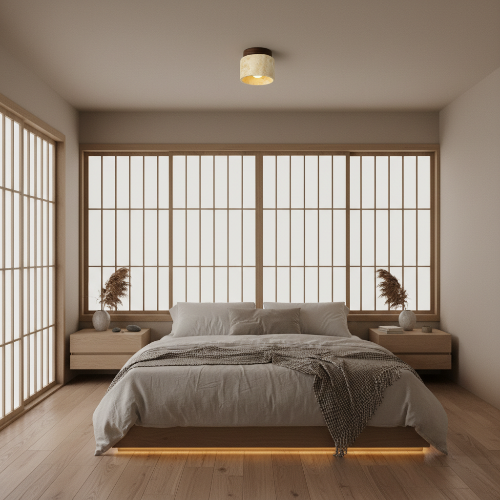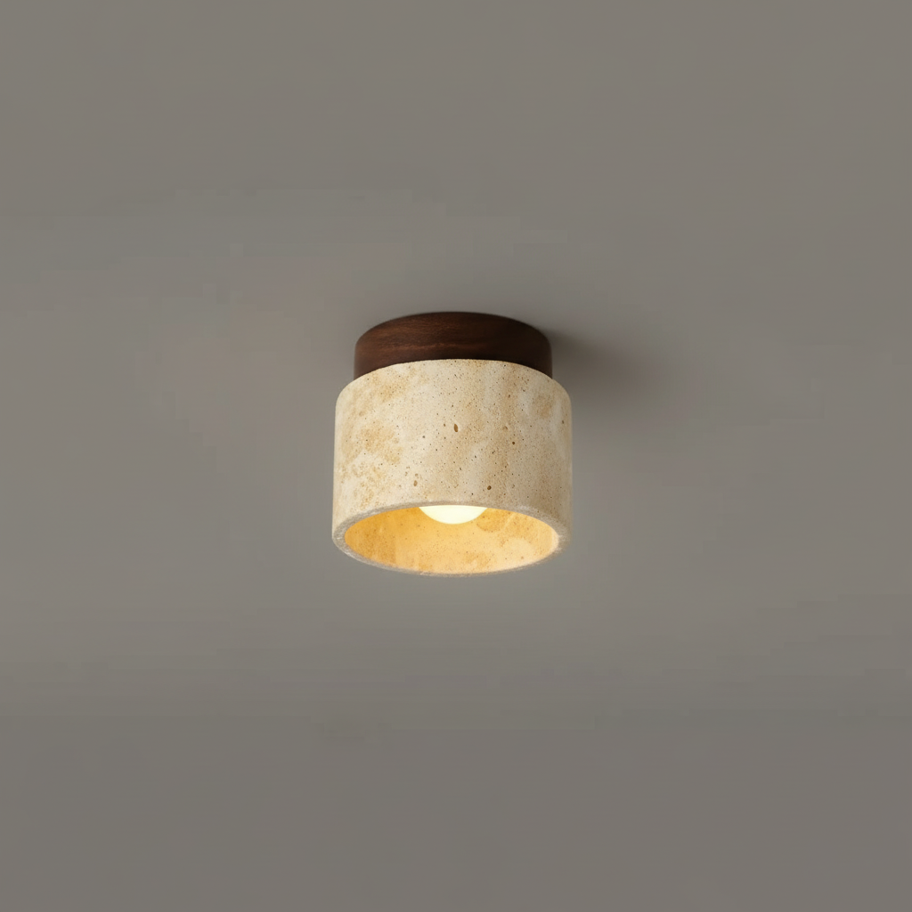The Radia Ceiling Lamp is a stunning blend of Japanese elegance and modern design, perfect for enhancing the ambiance of any room. Its cylindrical travertine body paired with a wooden accent creates a unique aesthetic that radiates tranquillity. Ideal for living rooms, bedrooms, and more, this lamp brings warmth and style to your home.